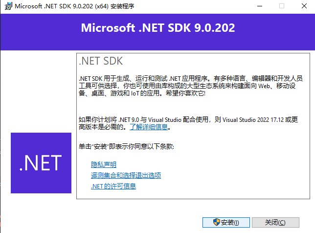 - 必须安装 .Net 9.0 或以上版本