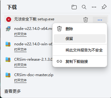 - 如果显示通常不会下载 xxx ,再次操作右上角三个点,点击【保留】。
