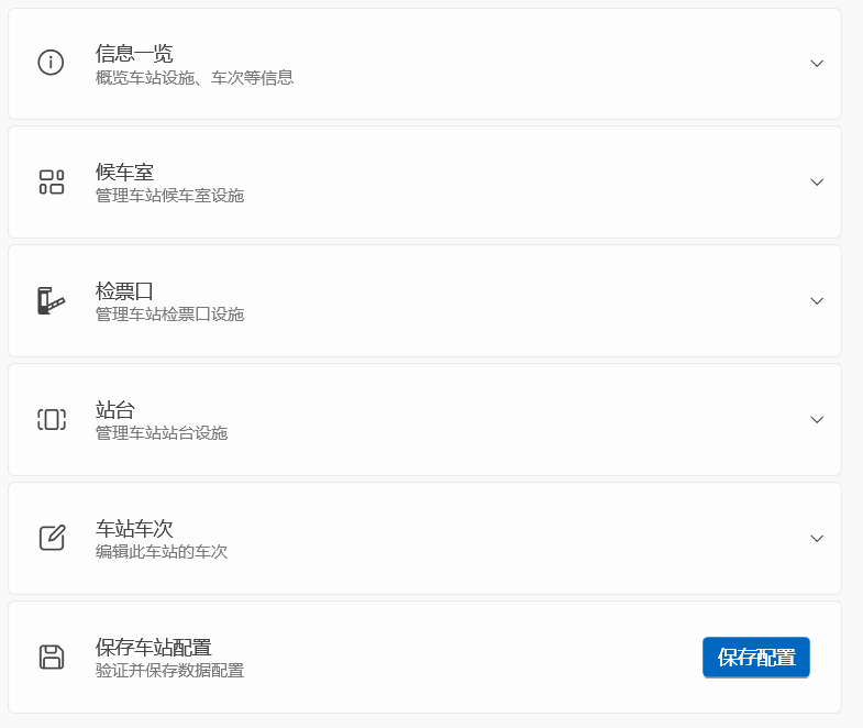 在页面右侧是车站管理功能区。在车站列表中选择任意车站后该功能区才会被启用。
