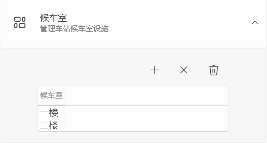 候车室面板提供候车室管理功能,你可以通过操作栏来新增、删除、清空候车室。
