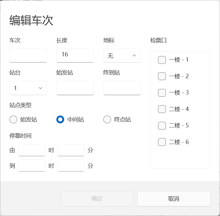 AB检票口和站台(如1A、1B检票口和1站台),随机生成时会自动绑定检票口、站台,